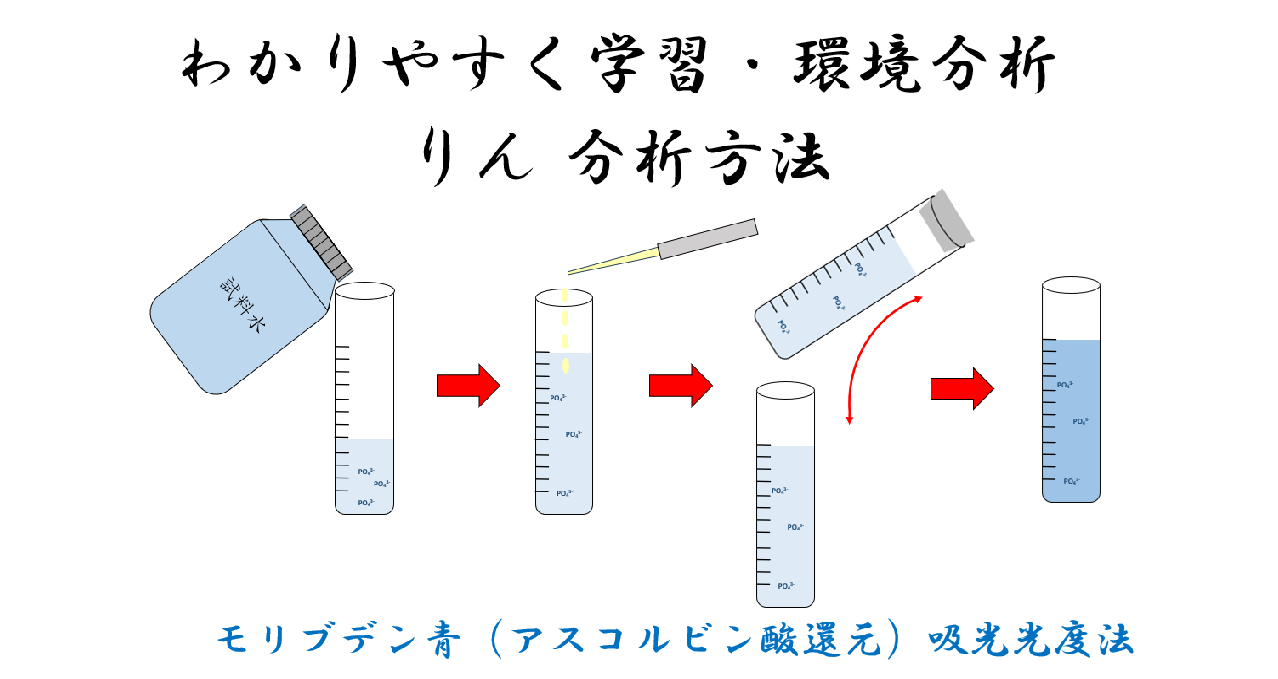 今回はどの過程で共通するモリブデン青(アスコルビン酸還元)吸光光度法について、イラストを交えて分析操作や注意事項、発色の話を説明します。